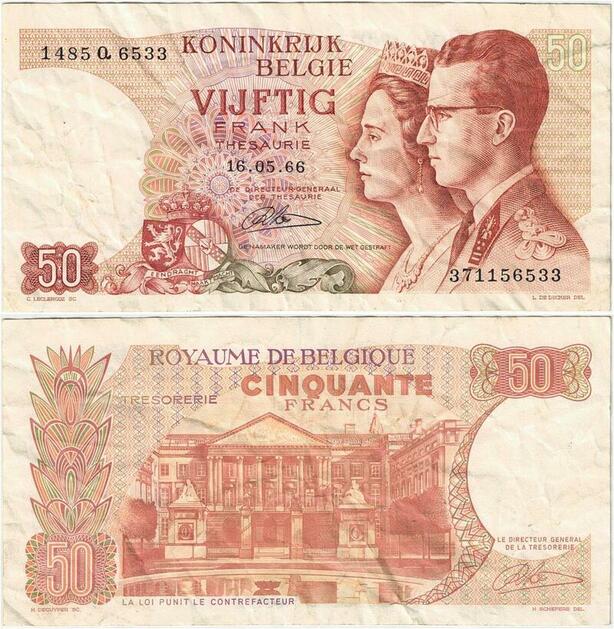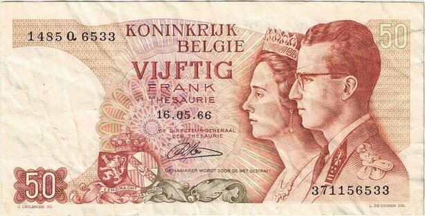 Q5668 Banknote Belgium 50 Francs Baudouin I Queen Fabiola 1966 -> Make offer
