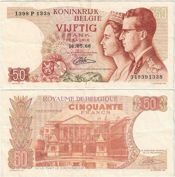 Q5670 Banknote Belgium 50 Francs Baudouin I Queen Fabiola 1966 -> Make offer