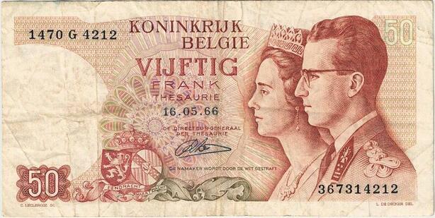 Q5673 Banknote Belgium 50 Francs Baudouin I Queen Fabiola 1966 -> Make offer