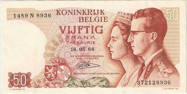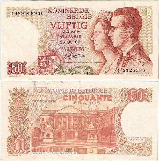 Q5678 Banknote Belgium 50 Francs Baudouin I Queen Fabiola 1966 -> Make offer
