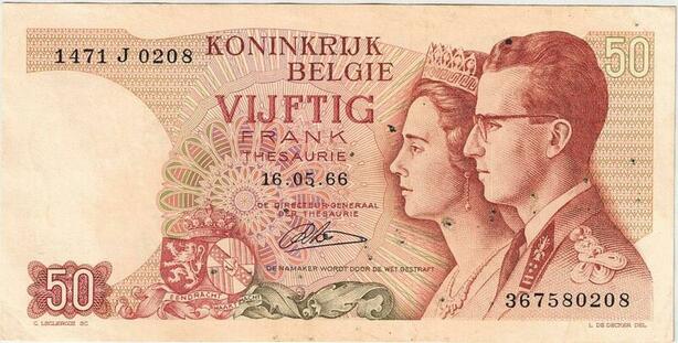Q5680 Banknote Belgium 50 Francs Baudouin I Queen Fabiola 1966 AU -> Make offer