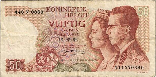 Q5684 Banknote Belgium 50 Francs Baudouin I Queen Fabiola 1966 -> Make offer