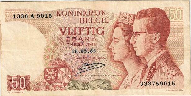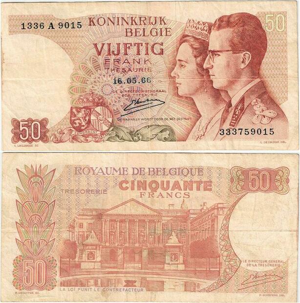 Q5686 Banknote Belgium 50 Francs Baudouin I Queen Fabiola 1966 -> Make offer