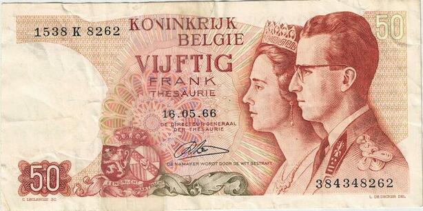 Q5689 Banknote Belgium 50 Francs Baudouin I Queen Fabiola 1966 -> Make offer