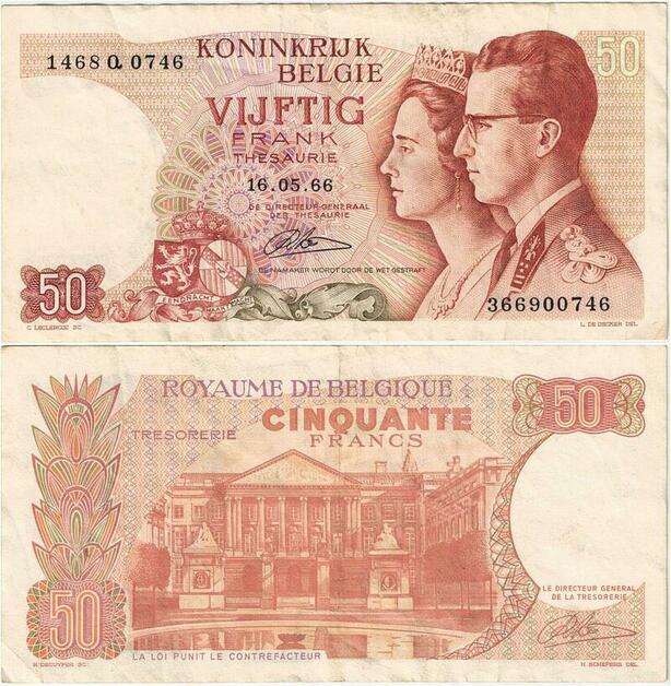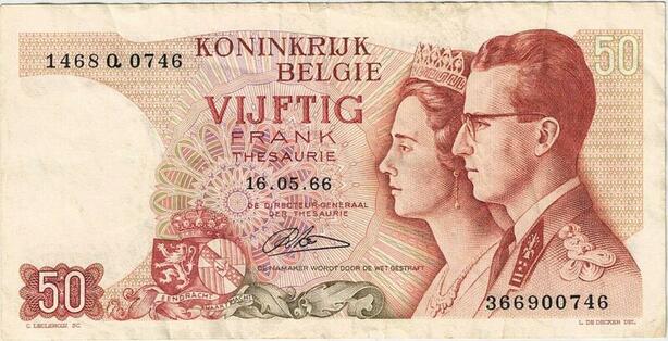 Q5693 Banknote Belgium 50 Francs Baudouin I Queen Fabiola 1966 -> Make offer