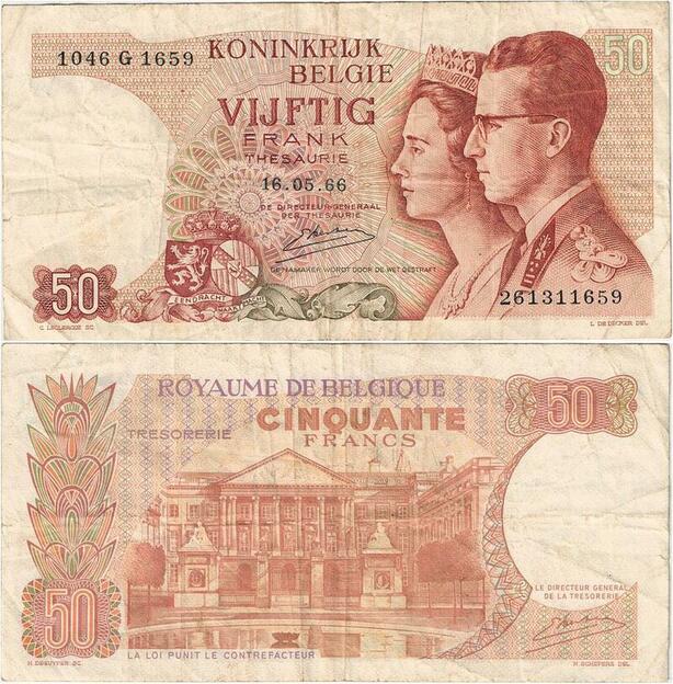 Q5699 Banknote Belgium 50 Francs Baudouin I Queen Fabiola 1966 -> Make offer