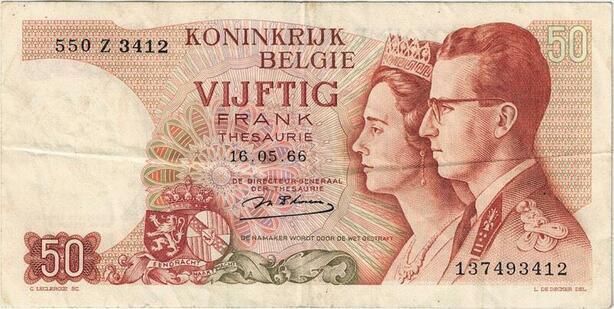 Q5701 Banknote Belgium 50 Francs Baudouin I Queen Fabiola 1966 -> Make offer