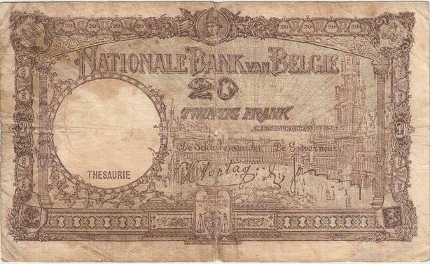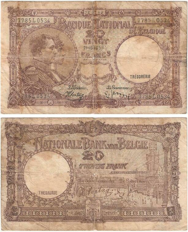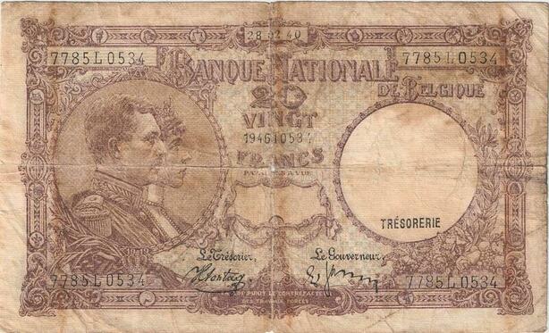 Q5719 Banknote Belgium 20 Francs Albert I Queen Elizabeth 1940 -> Make offer