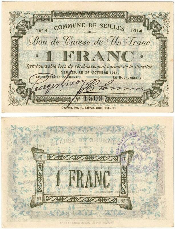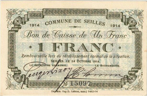 Q5723 Banknote Belgium Ardennes Seilles WWI 1 Franc 1914 UNC -> Make offer