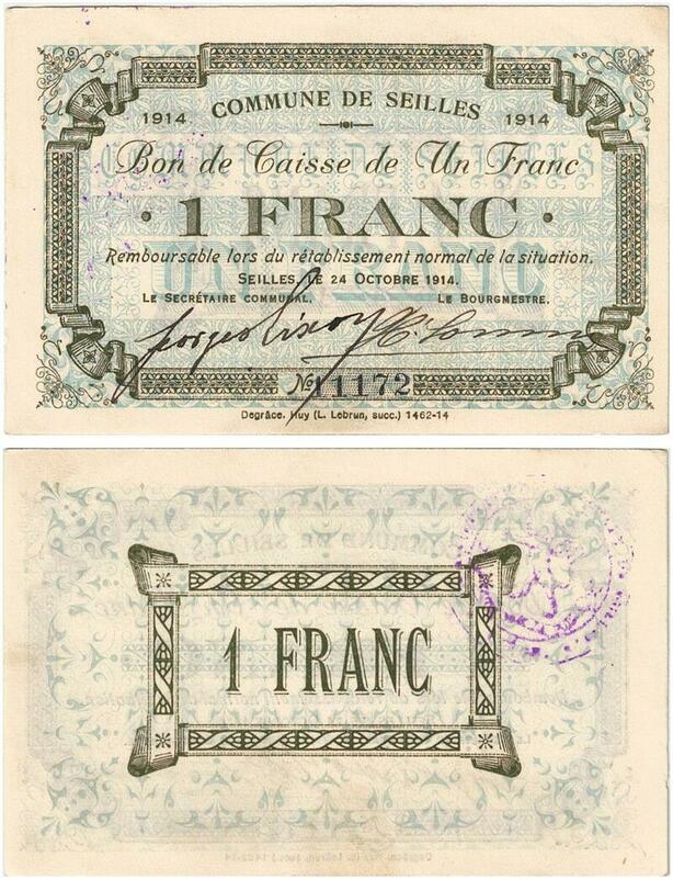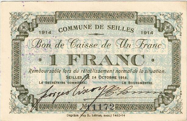 Q5734 Banknote Belgium Ardennes Seilles WWI 1 Franc 1914 AU -> Make offer