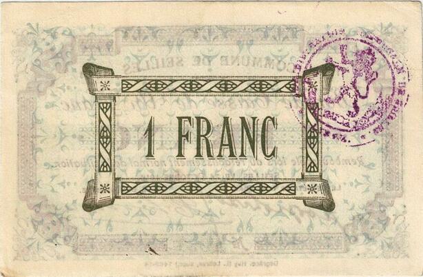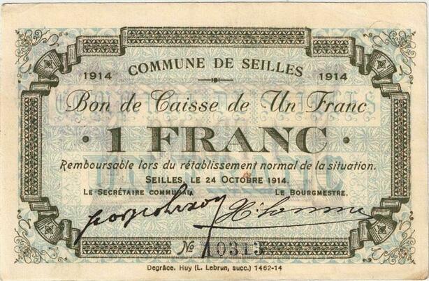 Q5736 Banknote Belgium Ardennes Seilles WWI 1 Franc 1914 AU -> Make offer