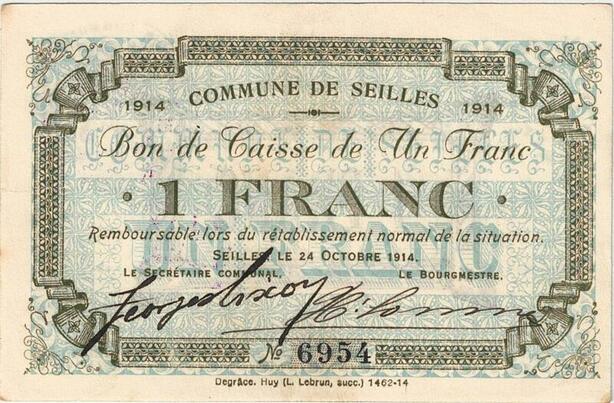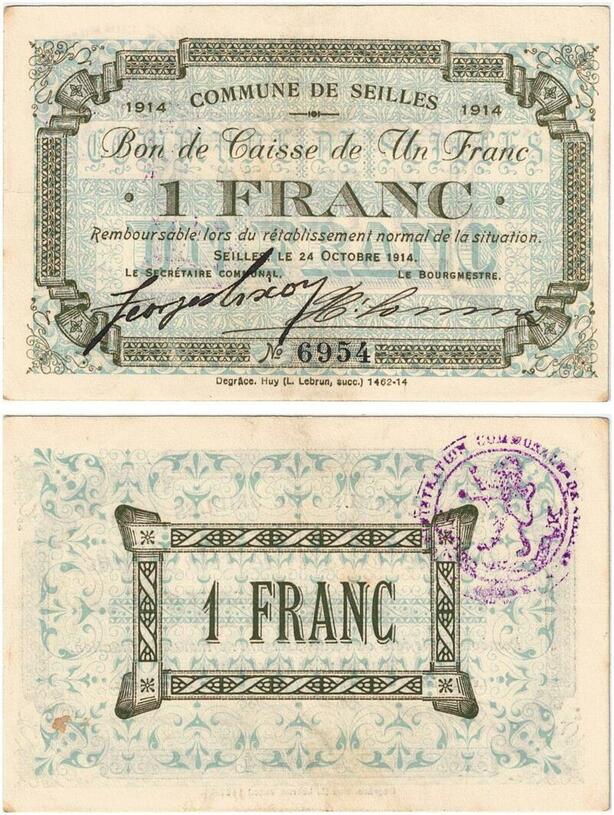 Q5741 Banknote Belgium Ardennes Seilles WWI 1 Franc 1914 -> Make offer