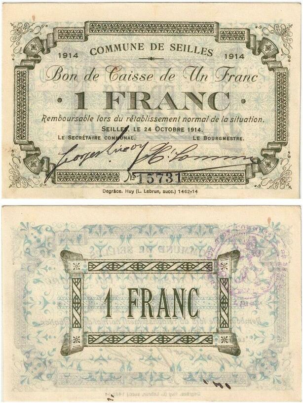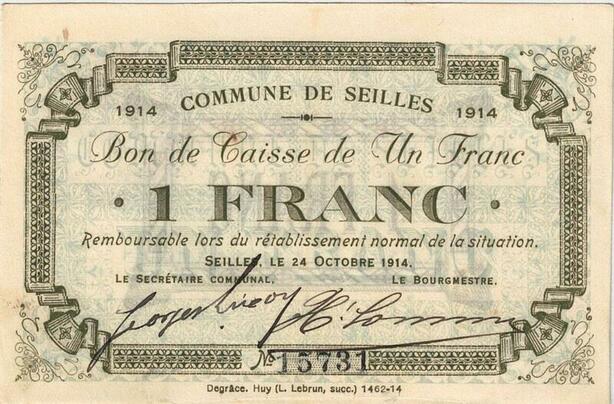 Q5742 Banknote Belgium Ardennes Seilles WWI 1 Franc 1914 AU -> Make offer