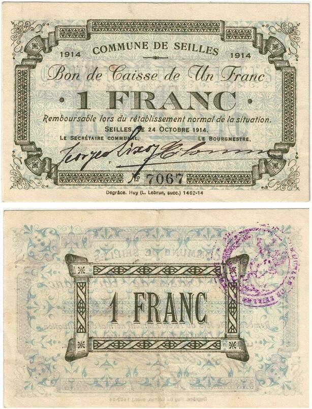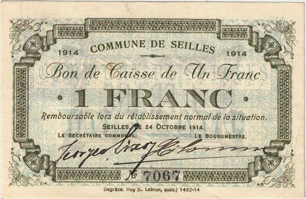 Q5746 Banknote Belgium Ardennes Seilles WWI 1 Franc 1914 -> Make offer