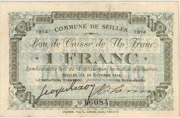 Q5747 Banknote Belgium Ardennes Seilles WWI 1 Franc 1914 -> Make offer