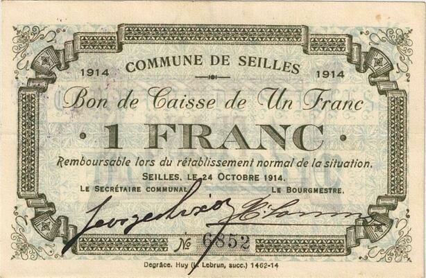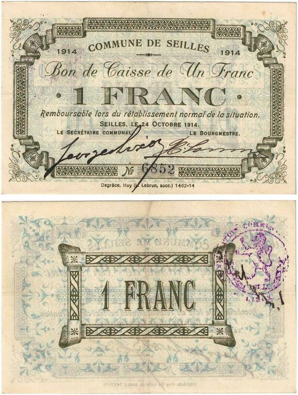 Q5748 Banknote Belgium Ardennes Seilles WWI 1 Franc 1914 -> Make offer