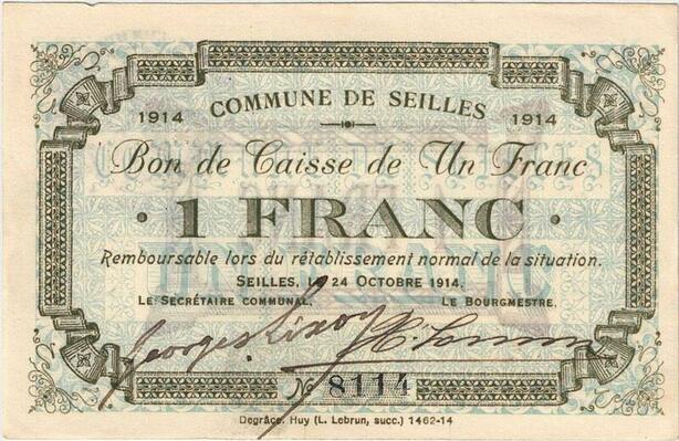 Q5749 Banknote Belgium Ardennes Seilles WWI 1 Franc 1914 AU+ -> Make offer