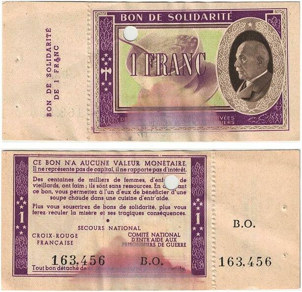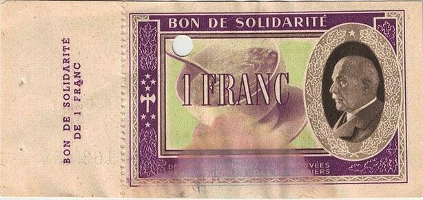Q5757 Banknote France Bon Solidarité 1 Franc Pétain 1941 Non Vendu -> Make offer