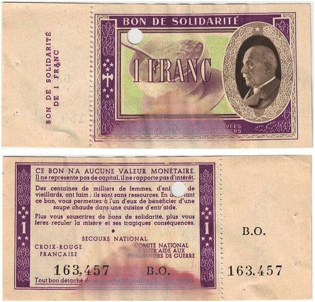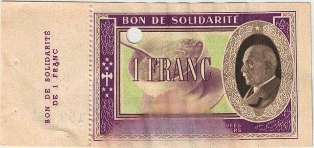 Q5758 Banknote France Bon Solidarité 1 Franc Pétain 1941 Non Vendu -> Make offer