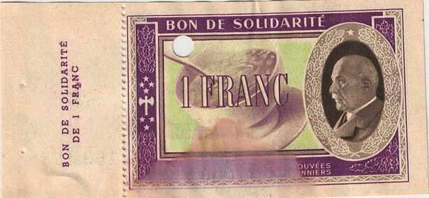 Q5759 Banknote France Bon Solidarité 1 Franc Pétain 1941 Non Vendu -> Make offer