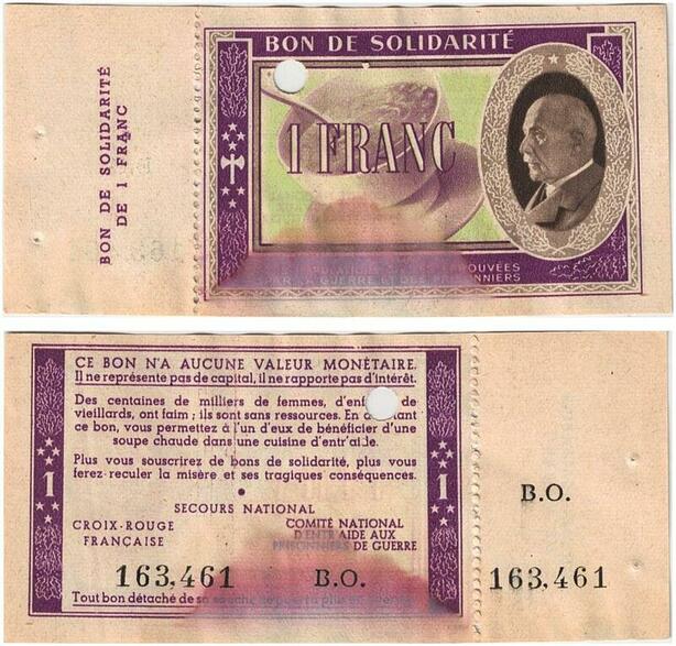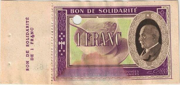 Q5762 Banknote France Bon Solidarité 1 Franc Pétain 1941 Non Vendu -> Make offer