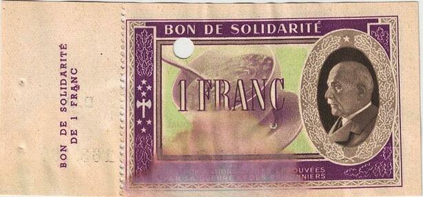 Q5768 Banknote France Bon Solidarité 1 Franc Pétain 1941 Non Vendu -> Make offer