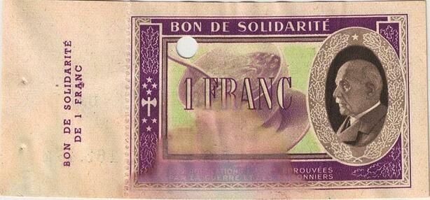 Q5773 Banknote France Bon Solidarité 1 Franc Pétain 1941 Non Vendu -> Make offer