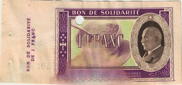 Q5775 Banknote France Bon Solidarité 1 Franc Pétain 1941 Non Vendu -> Make offer