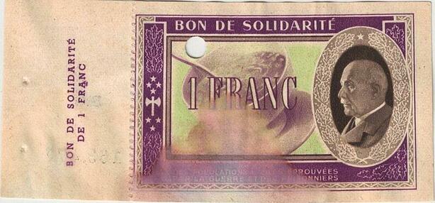 Q5778 Banknote France Bon Solidarité 1 Franc Pétain 1941 Non Vendu -> Make offer