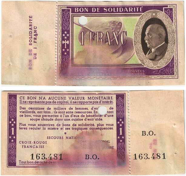 Q5782 Banknote France Bon Solidarité 1 Franc Pétain 1941 Non Vendu -> Make offer