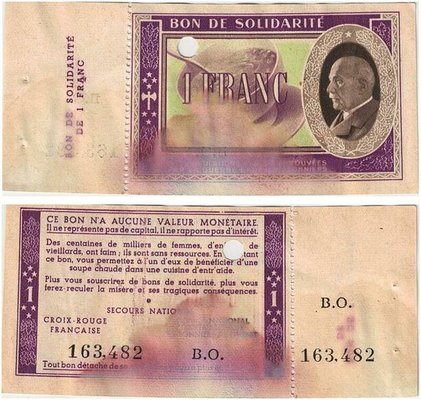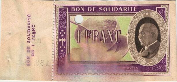 Q5783 Banknote France Bon Solidarité 1 Franc Pétain 1941 Non Vendu -> Make offer