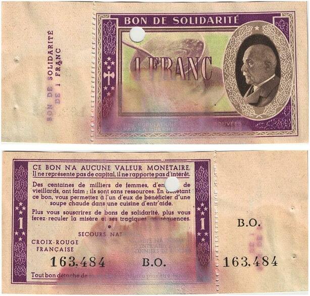 Q5785 Banknote France Bon Solidarité 1 Franc Pétain 1941 Non Vendu -> Make offer