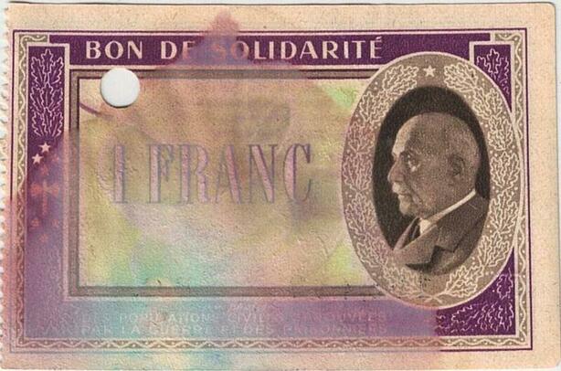 Q5790 Banknote France Bon Solidarité 1 Franc Pétain 1941 Vendu -> Make offer