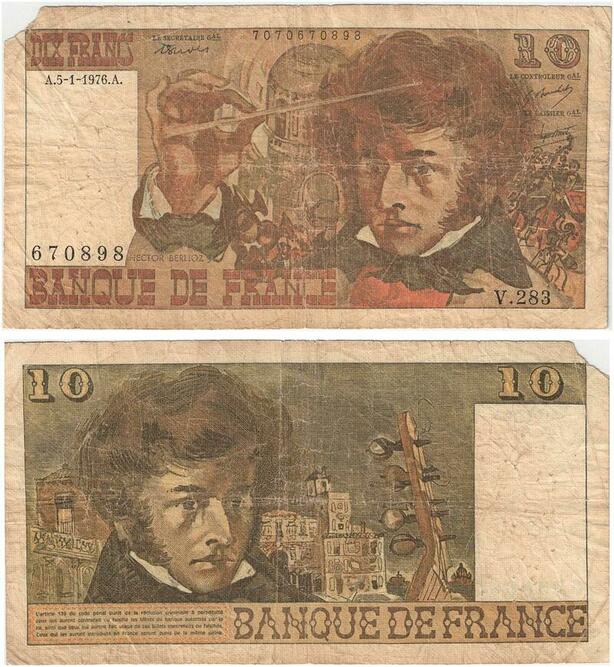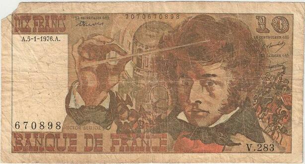 Q5793 Banknote France 10 Francs Hector Berlioz 1976 -> Make offer