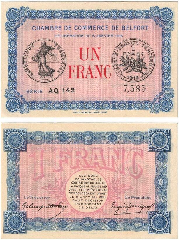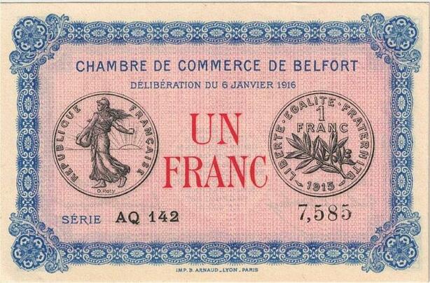 Q5802 Banknote France Belfort 1 Franc Semeuse Nécessité 1916 -> Make offer