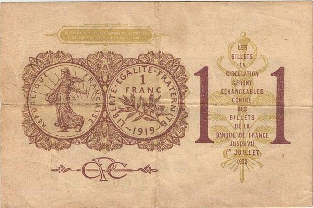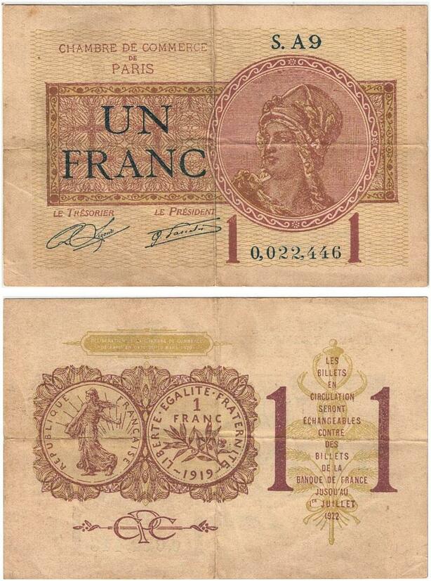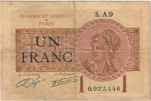 Q5809 Banknote France 1 Franc Chambre Commerce Paris 1920 -> Make offer