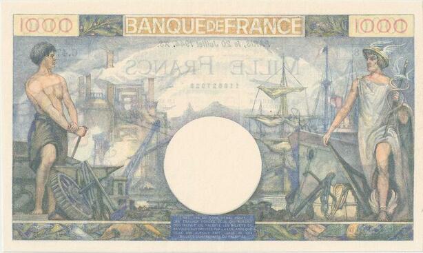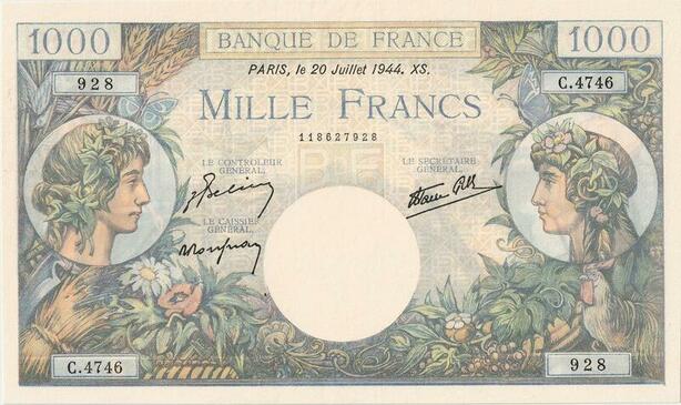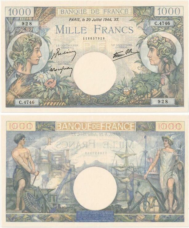 Q5813 Banknote France 1000 Francs Commerce Industrie 1944 UNC -> Make offer
