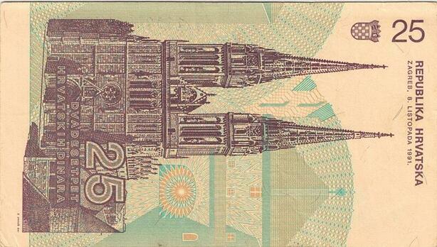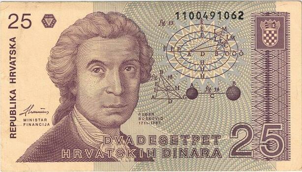 Q5825 Banknote Croatia 25 Dinara Ruder Boskovic 1991 AU -> Make offer