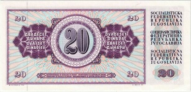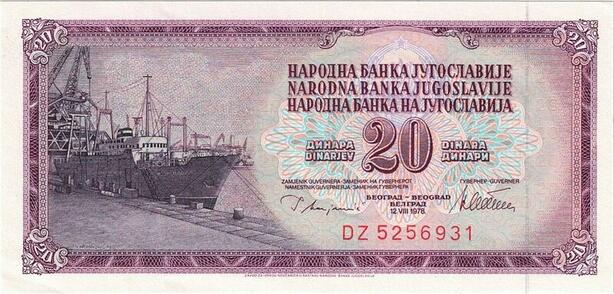 Q5829 Banknote Yugoslavia 20 Dinara 1968 UNC -> Make offer