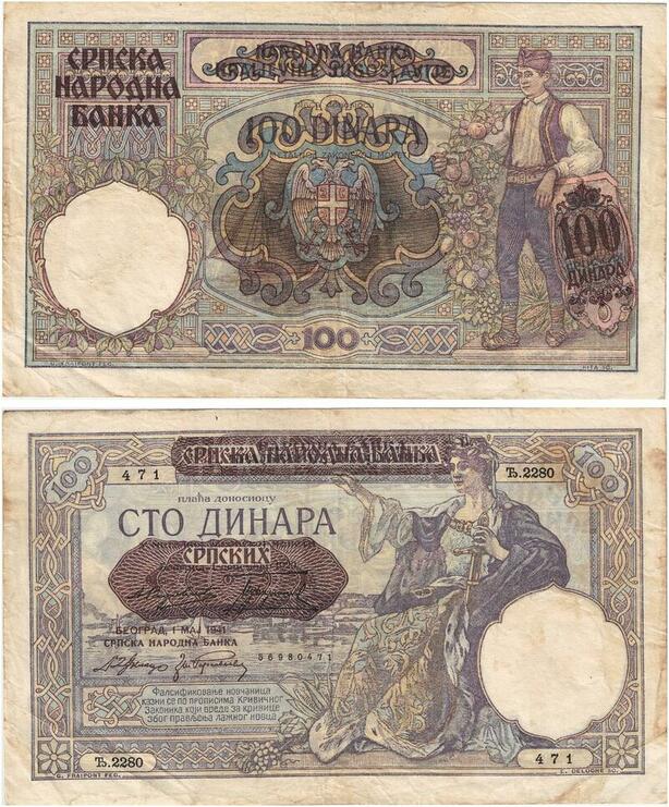 Q5831 Banknote Serbia 100 Dinara 1941 -> Make offer