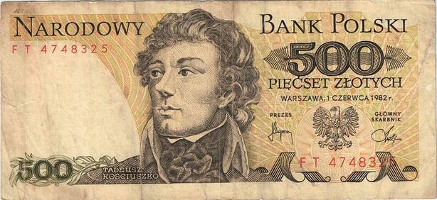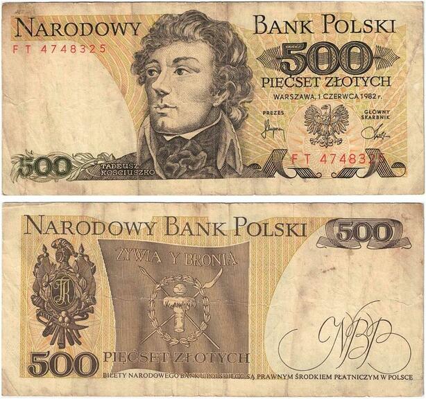 Q5839 Banknote Poland 500 Zlotych Tadeusz Kosciuszko 1982 -> Make offer