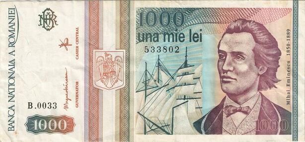Q5846 Banknote Romania 1000 Lei Mihai Eminescu 1993 -> Make offer