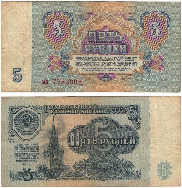 Q5856 Banknote Russia USSR 5 Rouble 1961 -> Make offer