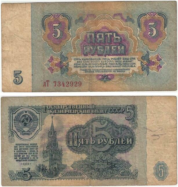 Q5874 Banknote Russia USSR 5 Rouble 1961 -> Make offer