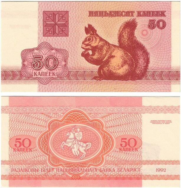 Q5890 Banknote Belarus 50 Kapeek Squirrel 1992 UNC -> Make offer
