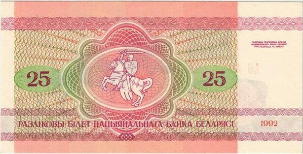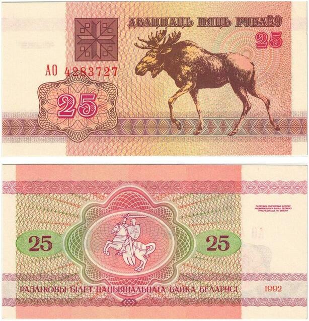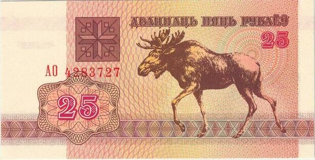 Q5891 Banknote Belarus 25 Rublei Moose 1992 UNC -> Make offer