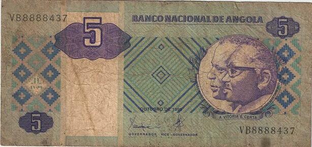 Q5914 Banknote Angola 5 Kwanzas Joe Eduaro Santos Antonio Agnostinho Neto 1999