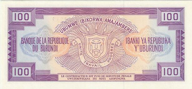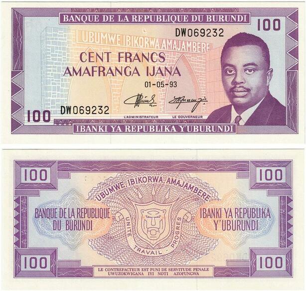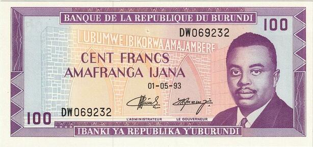 Q5927 Banknote Burundi 100 Francs Prince Louis Rwagasore 1993 UNC -> Make offer