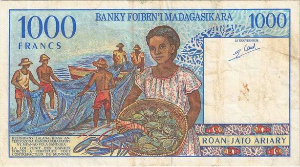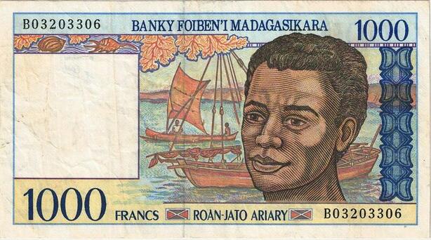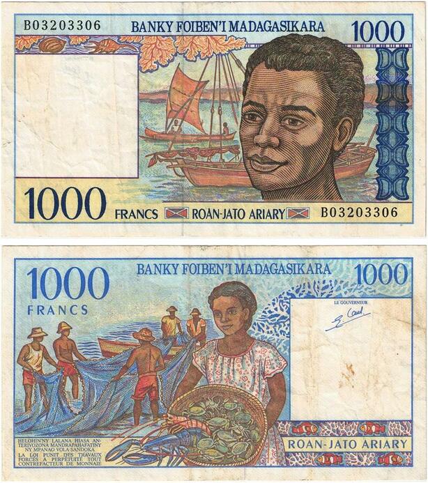 Q5932 Banknote Madagascar 1000 Francs 200 Ariary 1994 -> Make offer
