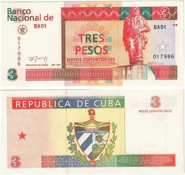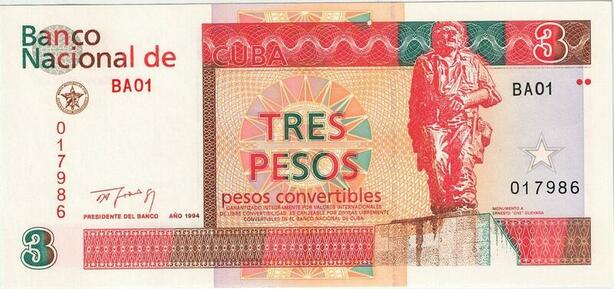 Q5949 Banknote Cuba 3 Pesos Convertibles 1994 UNC -> Make offer